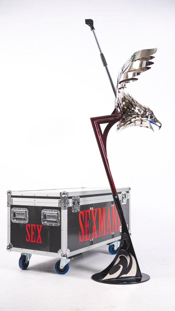 A custom microphone stand for Sexmane