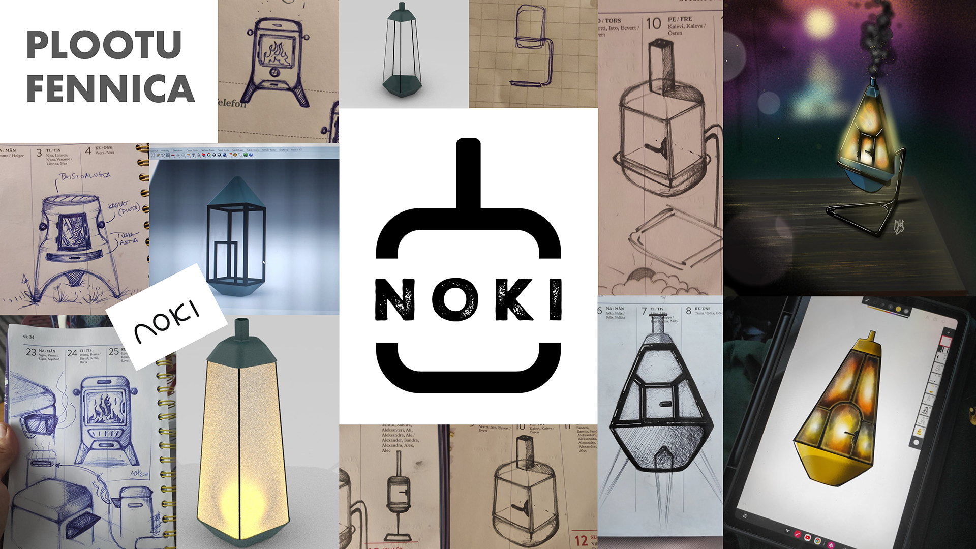 NOKI-ulkotulisija on minun ja kollegani Elmeri Lehtomäen käsialaa. Tämän projektin osalta Elmeri hoiti 3D-mallinnuksen, kun minä keskityin visuaaliseen ilmeeseen ja brändäykseen. Tuotteen muotoilu ja kaikki siihen liittyvät ratkaisut yksityiskohtia myöten sekä suunnitteluun liittyvä taustatyö, on tehty yhdessä.